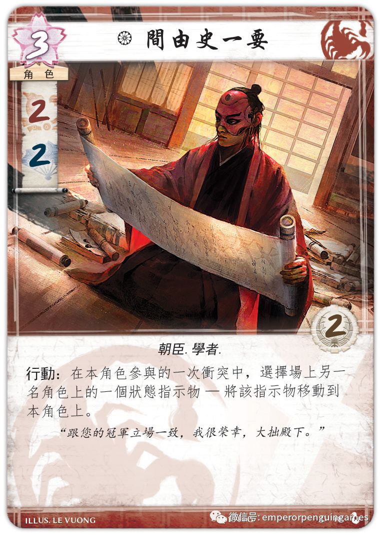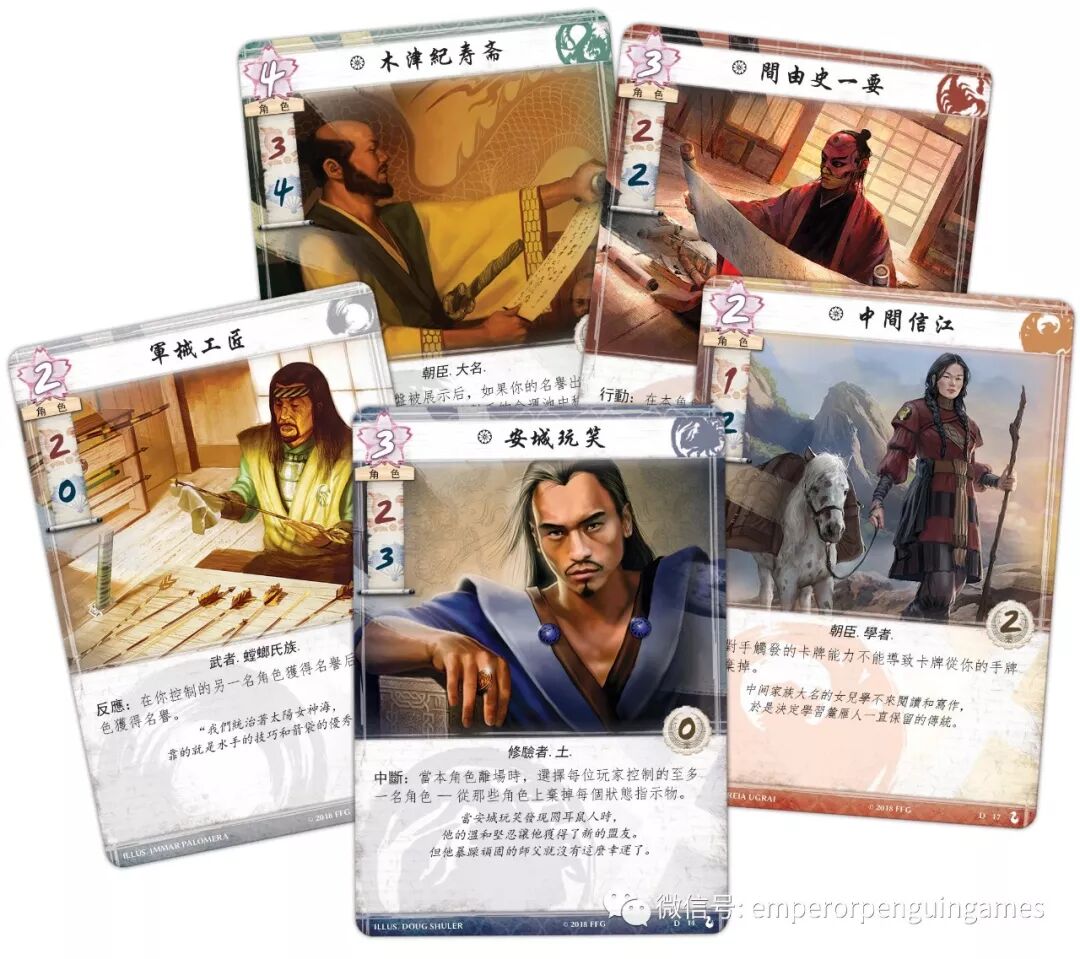 今天与我们一同预览《五轮传奇:卡牌游戏》的氏族扩展包《朝堂大师》中非仙鹤氏族的卡牌。虽然这个扩展当中大部分都是仙鹤氏族的卡,但其他六大氏族都会获得一个的全新角色(每种三张),这些角色通常都发挥着对抗仙鹤的作用。