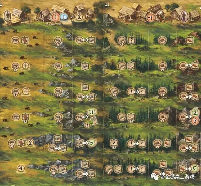 所有资源工位都可以由两位玩家同时采集,但后去的要比已经在的人的军力高,这也是军力的作用之一,但如果酋长亲自上阵,则工位会被独占,而且当酋长作为后去的工人时也不用考虑军力,但酋长毕竟是一家之主,他不能去远方的工位,不能让部落群龙无首!