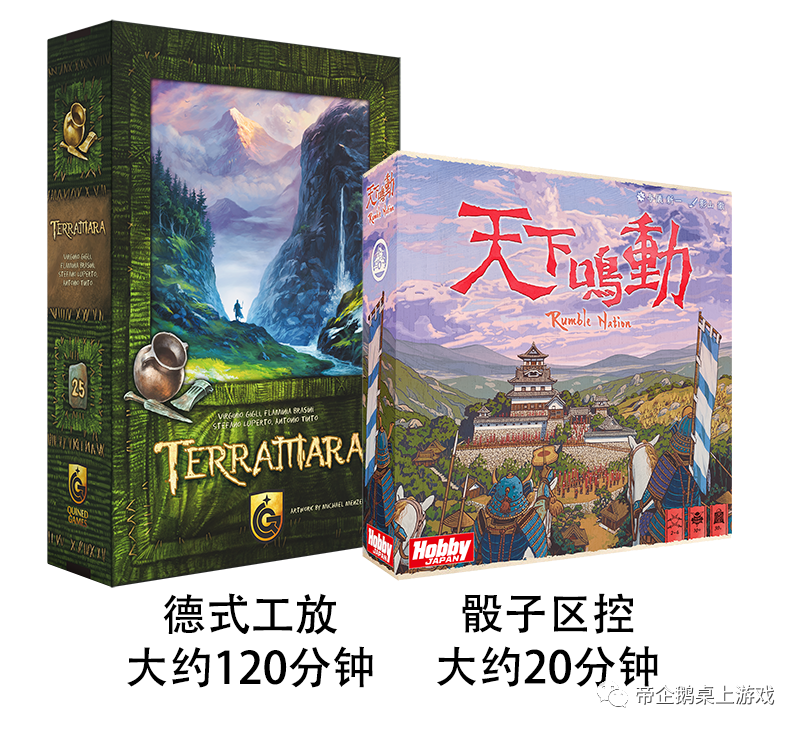 获得日本GM游戏大奖的《天下鸣动》,加上2020最令人期待的德策《特拉马拉》,两款经典游戏的超值组合,区控加工放,轻策加重策,他们将是你带去桌游聚会的最佳组合!