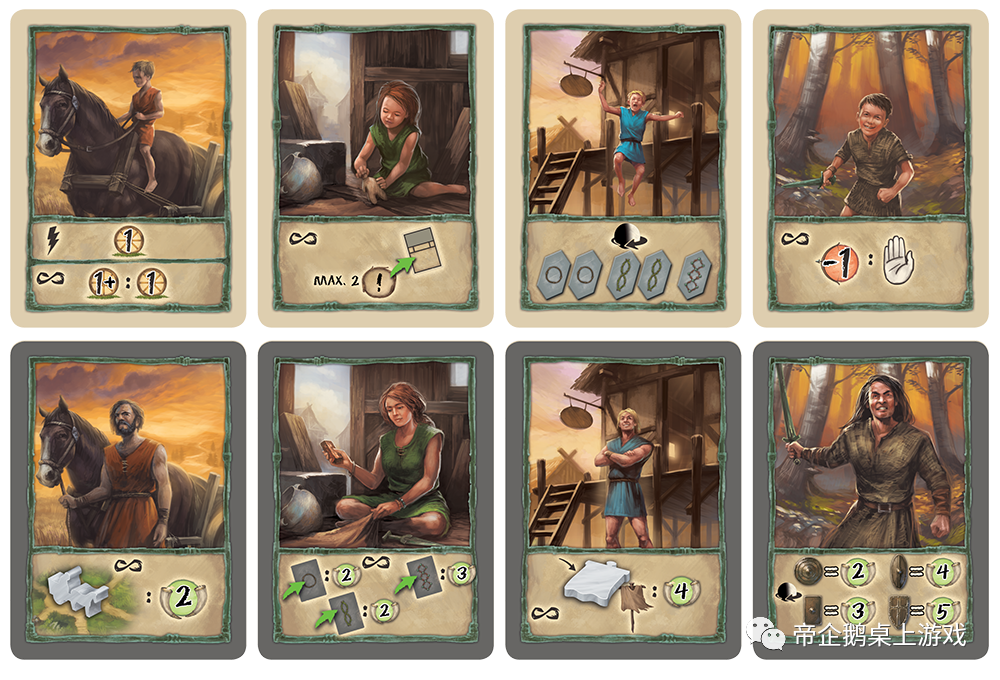玩家在游戏开始时都有各自的天赋,有的善于骑马,有的善于划船,有的善于制作工具,如果秉承着儿童时期的天性,这些天赋会给玩家带来相应行动上的增益,而如果玩家像成年人一样将天赋变成发展部落的力量,则会给玩家带来分数,适当的时侯作出转变,调整心态,将优势变为胜利!