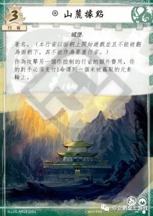 如果对手选择进攻这个行省,那这个行省就是一个3耐久、面朝上的白板行省。对于对手来说,这是一个完美的发起第一次冲突的目标。我能想到这张牌的唯一用处就是吸引对手,以保护己方的金蟾城(4-1,6)。