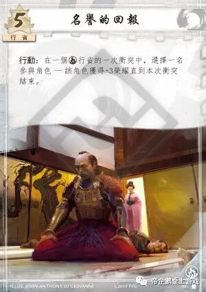 行动:在一个火行省的一次冲突中,选择一名参与角色 — 该角色获得+3荣耀直到本次冲突结束。