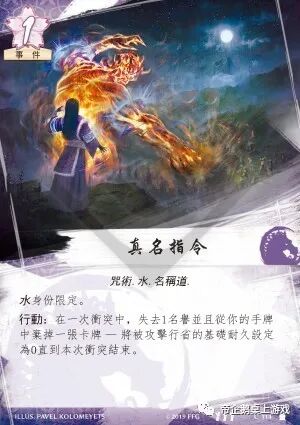 “真名指令”这种“改变行省耐久度”效果的卡牌出过一些,但我似乎就没见人使用过。要注意的是当你的能力点数为0时,使用“真名指令”也不能让你摧毁对方行省。因为你不能以0点能力点数获得冲突胜利。由于“真名指令”的使用代价太高(两张牌,1命运,1名誉),我很难想象出有那个场合适合使用该牌。