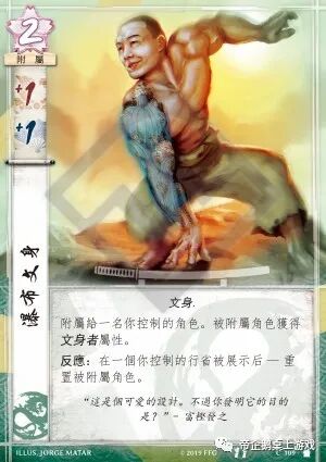 附属给一名你控制的角色。被附属角色获得文身者属性。反应:在一个你控制的行省被展示后 — 重置被附属角色。