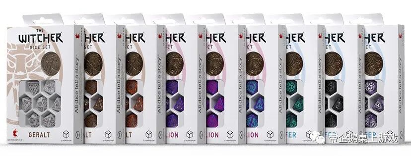 游戏介绍 猎魔人风格跑团骰子,3个主要人物,9种风格 最新的猎魔人风格跑团骰子到货。 每套包含7颗骰子,和一颗带人物头像的金属币。 杰洛特三种风格: 叶奈法三种风格 丹德里恩三种风格 猎魔人骰子也将参加618活动,欢迎大家到我们的淘宝店选购。