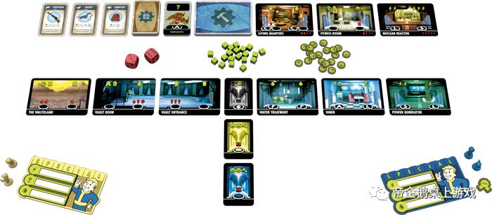 实际上,每个官员都在避难所里负责一层,来建造自己心仪的房间。一旦你的居民收集到了相应的资源,你就可以自由的扩建避难所中属于你的那一层。把属于你的那一层建好将有助于你成为新的监督者——好的房间可以吸引其他人来到你的这一层,例如,炫酷的核动力反应堆,或是全新的游戏室,这将让居民们知道选谁是监督者才是正确的。但是也不要太激进!当一名官员在他那一层建造了第六个房间后,游戏将在当轮结束。
